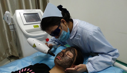 (图为,黑脸娃娃治疗现场)